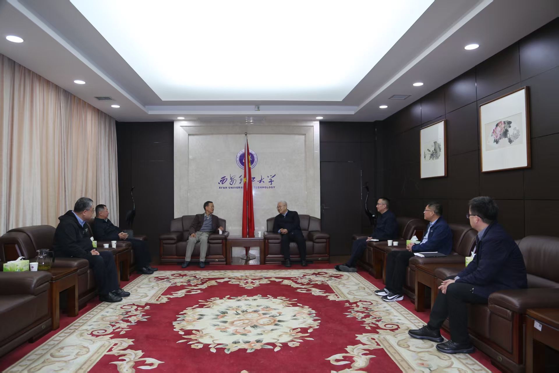 会前,李智军对马建斌一行莅临我校调研高校后勤采购工作表示欢迎,对分会长期以来在学校采购工作中给予的帮助和指导表示感谢。他简要介绍了学校发展历史、学科建设、人才培养、重大设备更新、招标采购机构设置等情况。马建斌肯定了学校发展建设所取得的成效,对学校给予调研工作的支持表示感谢。