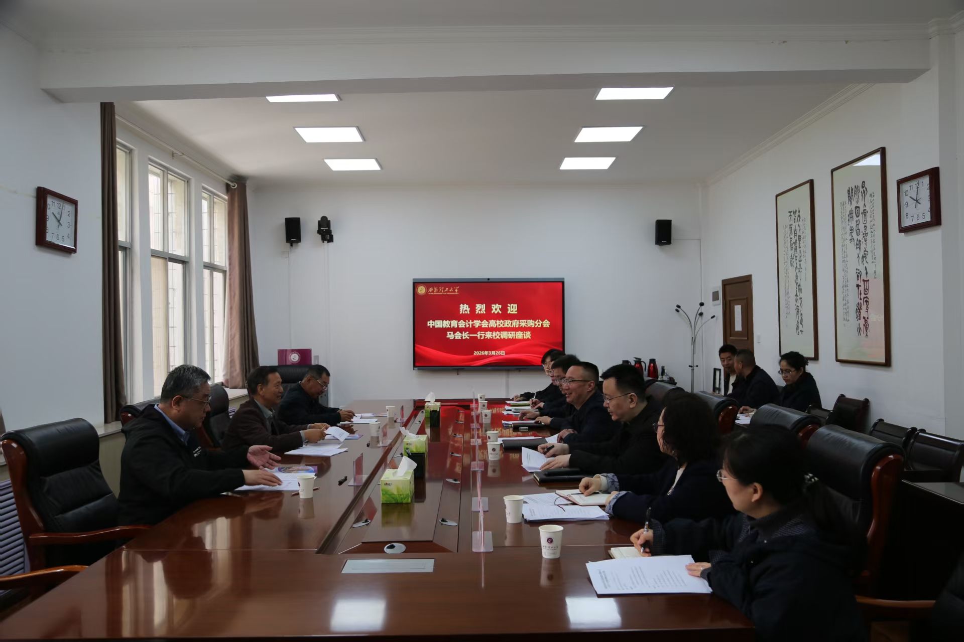 3月26日上午,中国教育会计学会高校政府采购分会会长马建斌,副会长王东、杨晋生一行来校调研座谈。校党委书记李智军会前会见了调研组。副校长高勇出席并主持座谈会。