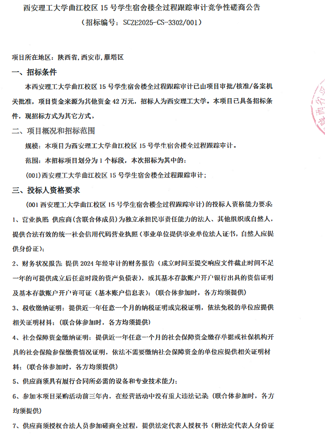 下一篇:【全过程审计】西安理工大学曲江校区16号学生宿舍楼全过程跟踪审计竞争性磋商公告