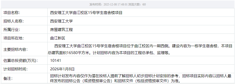 下一篇:【曲江新区】曲江校区教学实验大楼项目招标计划